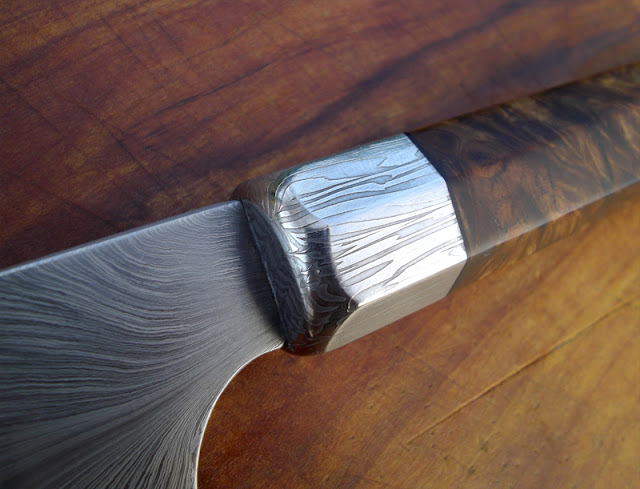 This is also a new handle shape for me. It is more diamond shaped than octagonal with a taper front and back. It is very comfortable in either "hammer grip" or "pinch grip".